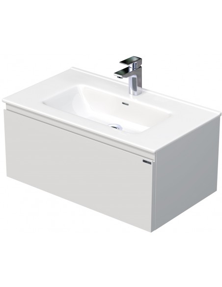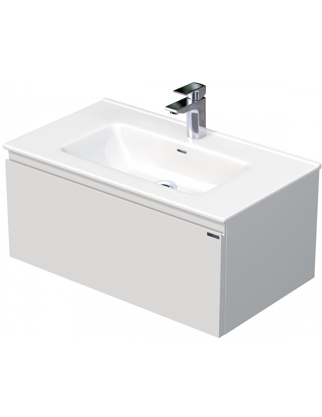LETTY Komplet badmiljø med håndvask til bordmonteret armatur. Badmiljøet kommer med 1 skuffe med softclose og er fremstillet i MDF. Håndvasken er fremstillet i hvid keramik. Badmiljøet måler 80 / 81 cm i bredden. Det viste armatur medfølger ikke i sættet.