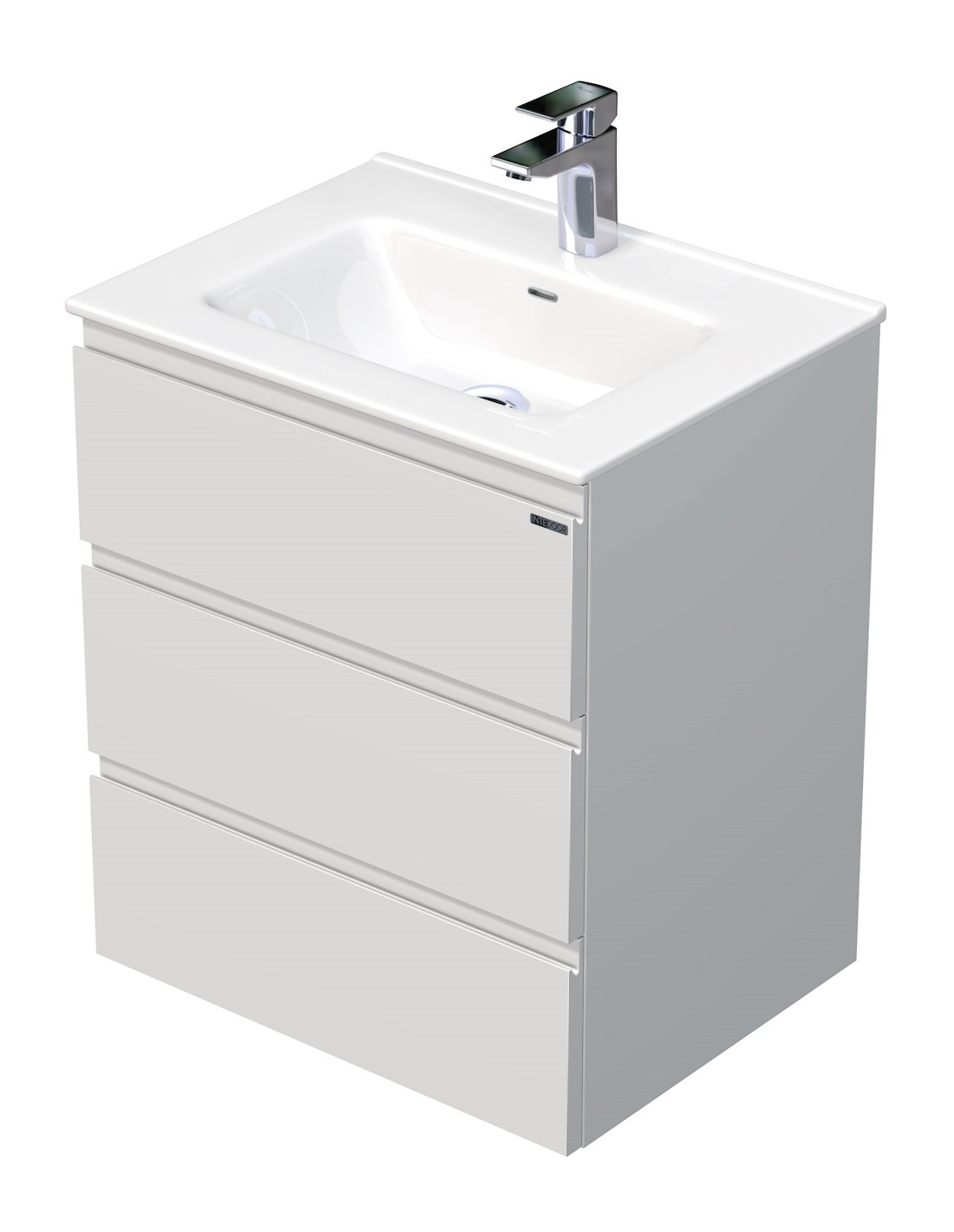 LETTY Komplet badmiljø med håndvask til bordmonteret armatur. Badmiljøet kommer med 3 skuffer med softclose og er fremstillet i MDF. Håndvasken er fremstillet i hvid keramik. Badmiljøet måler 60 / 61 cm i bredden. Det viste armatur medfølger ikke i sættet.