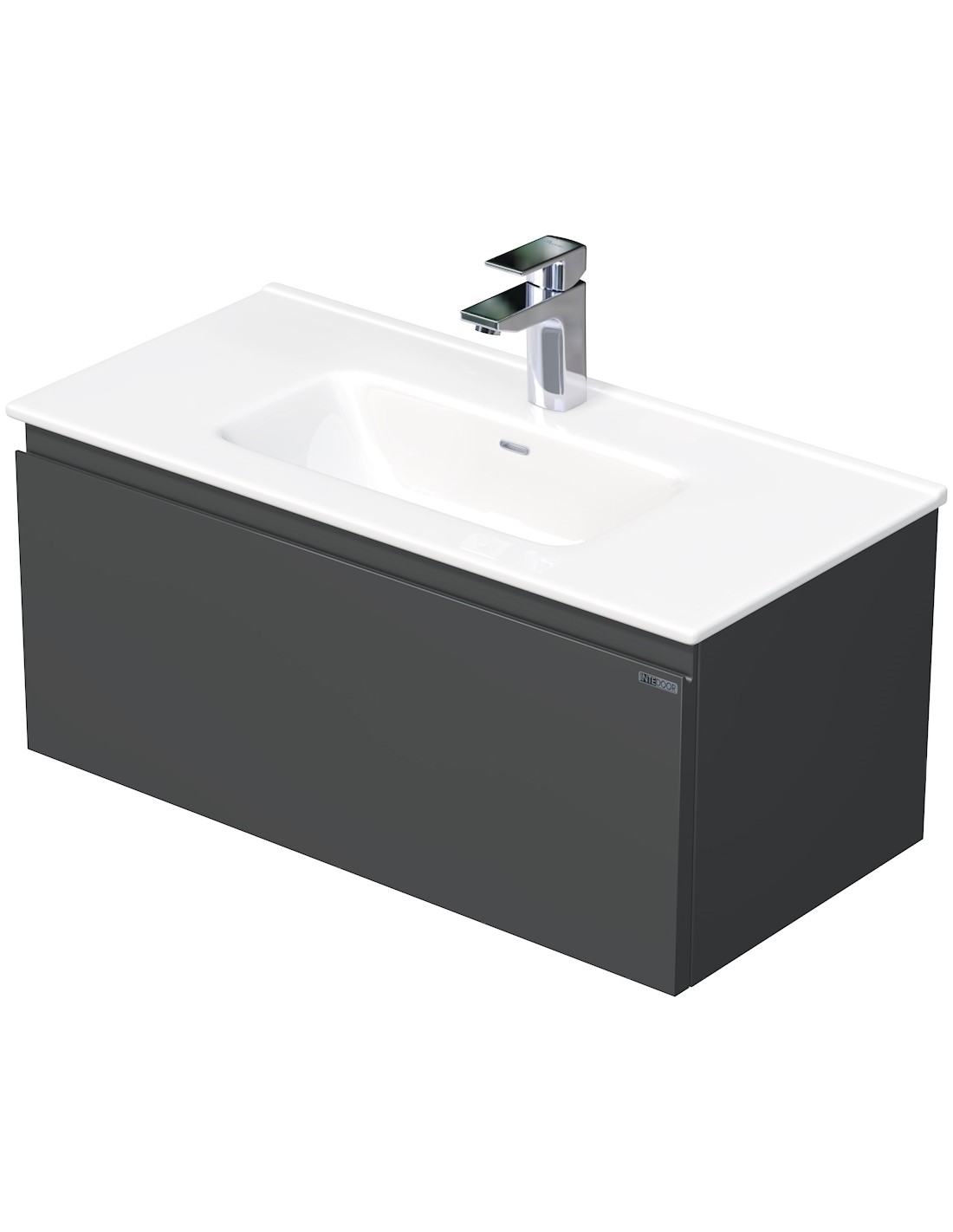 LETTY Mini Komplet badmiljø med håndvask B81 cm Keramik og MDF - Mat antracit