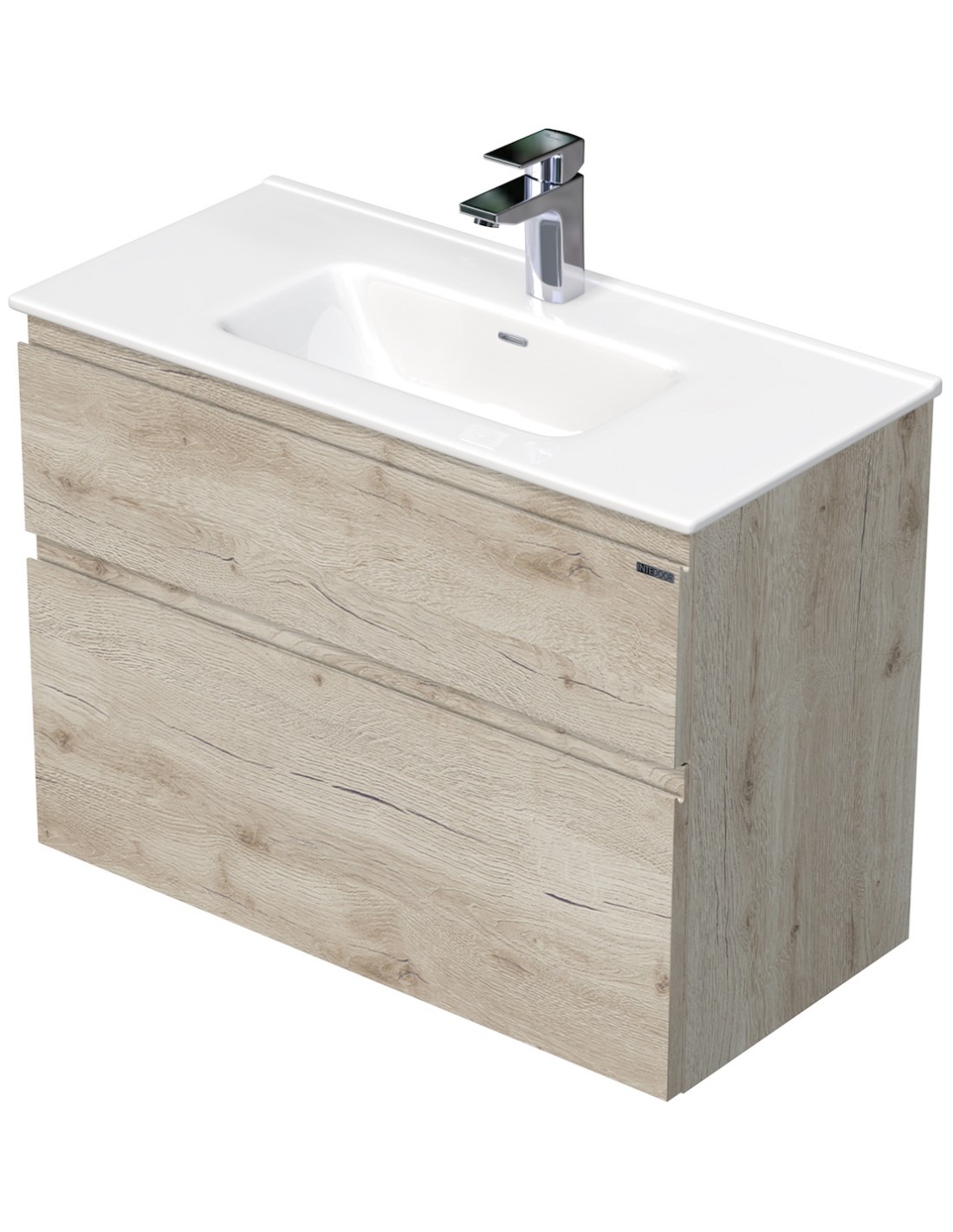 LETTY Mini Komplet badmiljø med håndvask B81 cm Keramik og MDF - Lys eg
