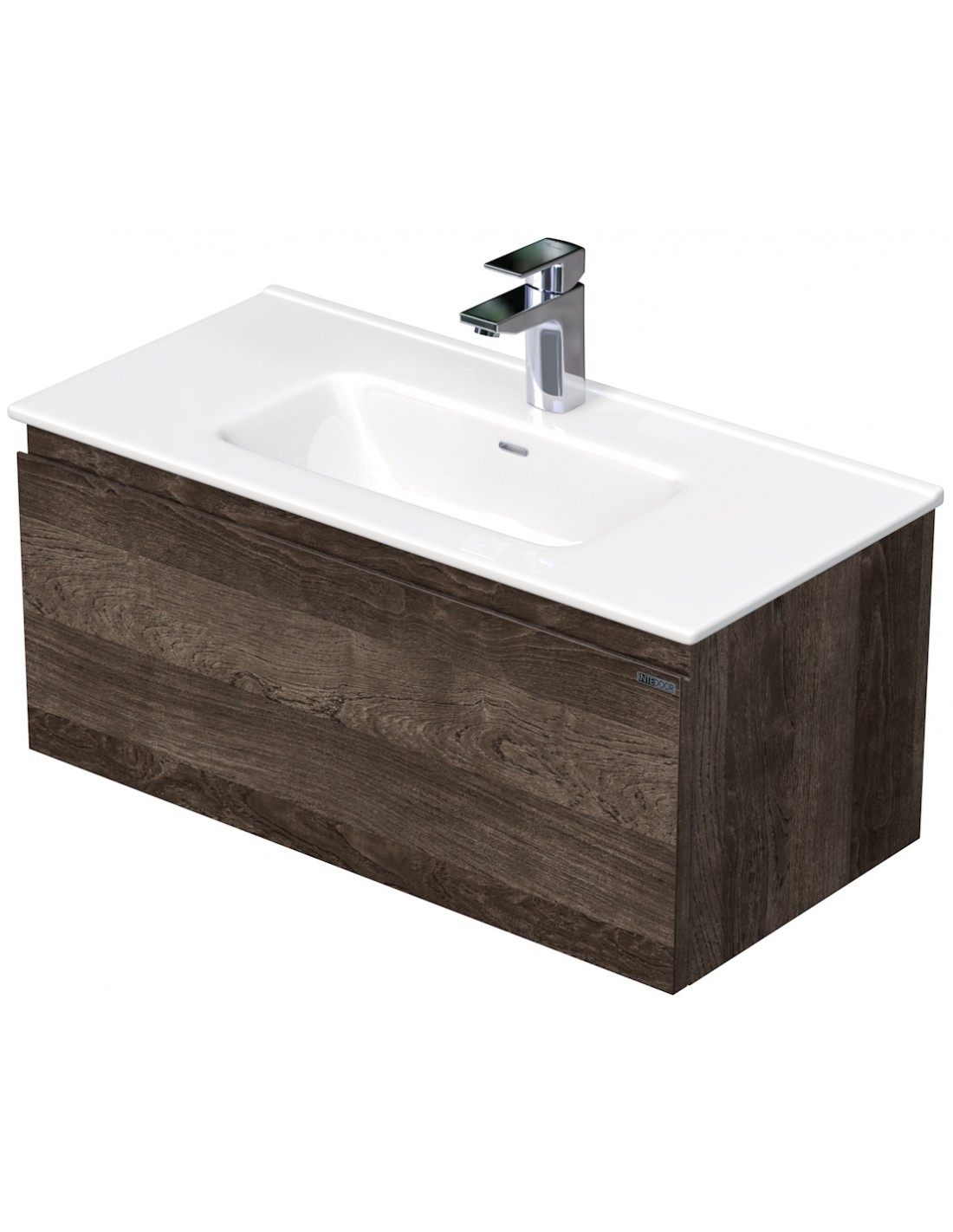 LETTY Mini Komplet badmiljø med håndvask B81 cm Keramik og MDF - Mørk eg