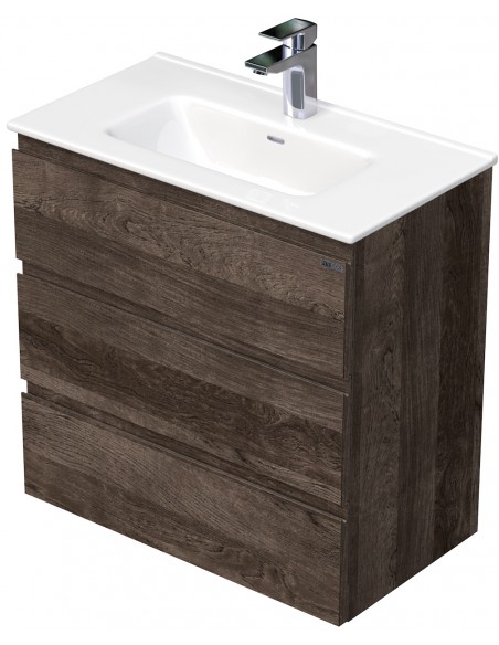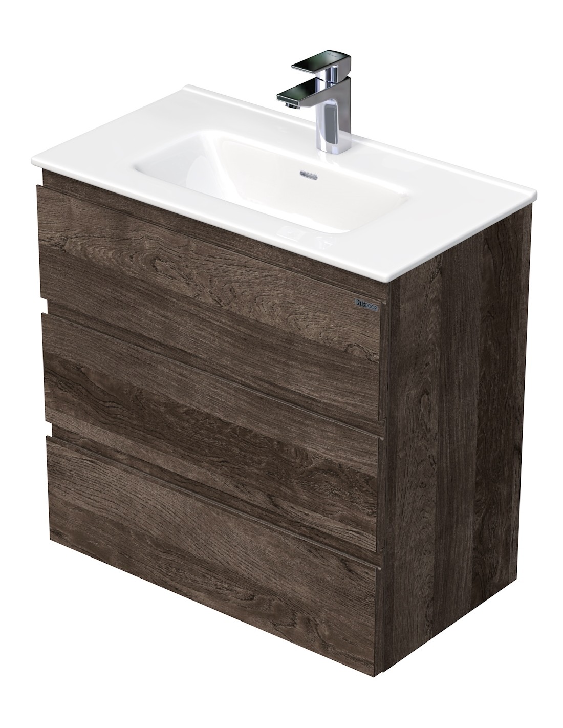 LETTY Mini Komplet badmiljø med håndvask B71 cm Keramik og MDF - Mørk eg