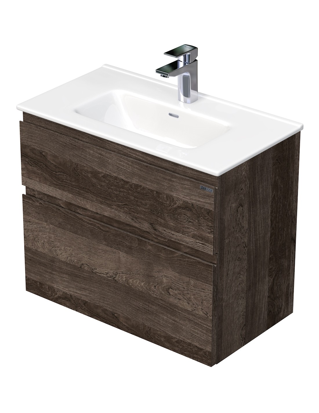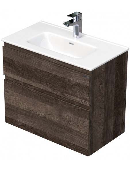 LETTY Mini Komplet badmiljø med håndvask B71 cm Keramik og MDF - Mørk eg