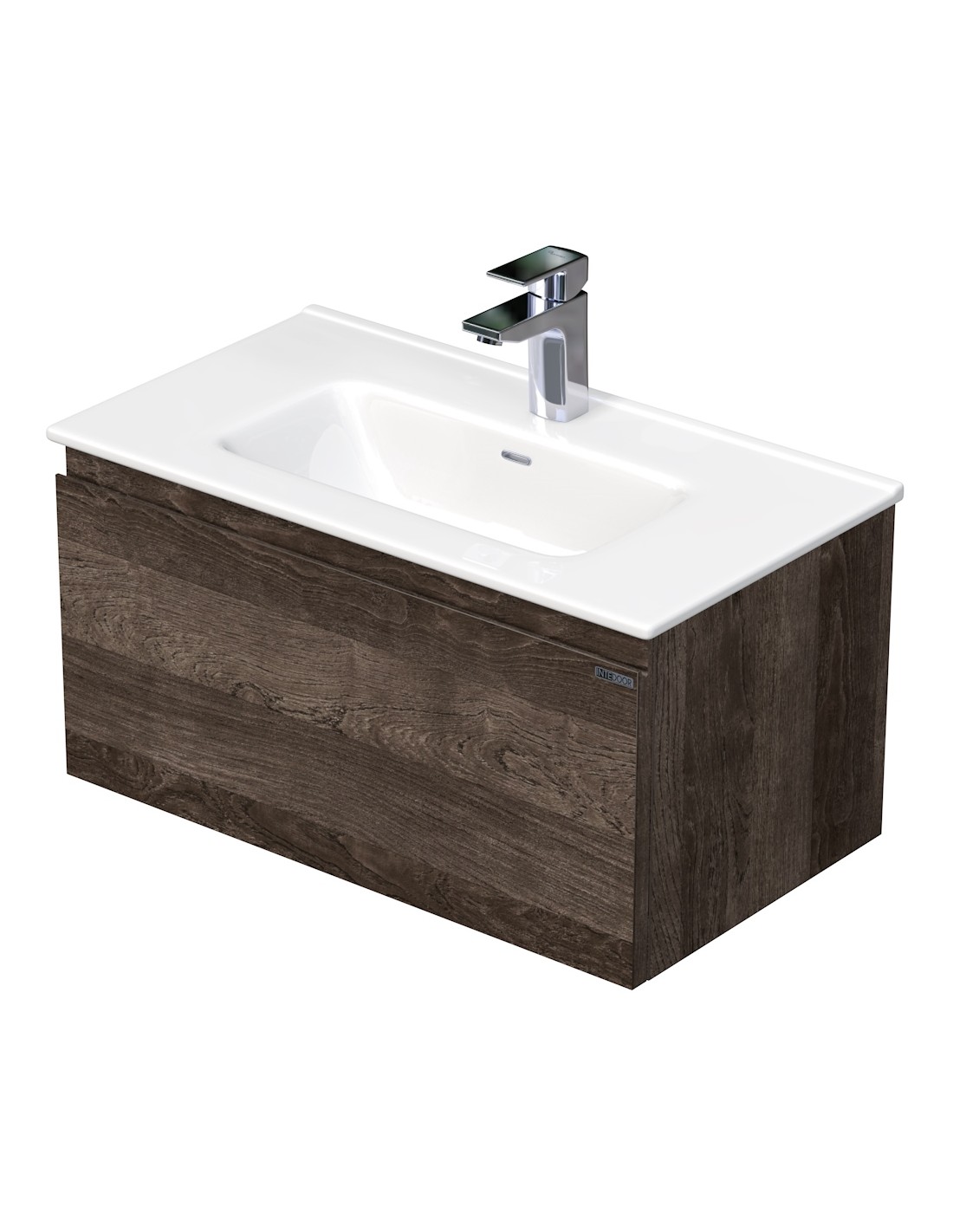 LETTY Mini Komplet badmiljø med håndvask B71 cm Keramik og MDF - Mørk eg