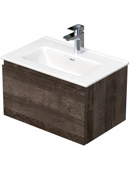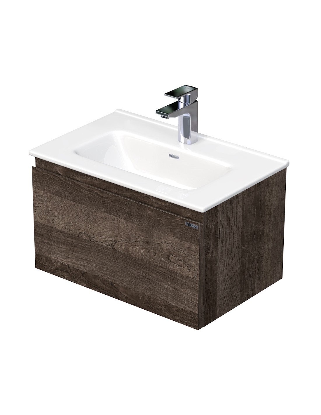 LETTY Mini Komplet badmiljø med håndvask B61 cm Keramik og MDF - Mørk eg