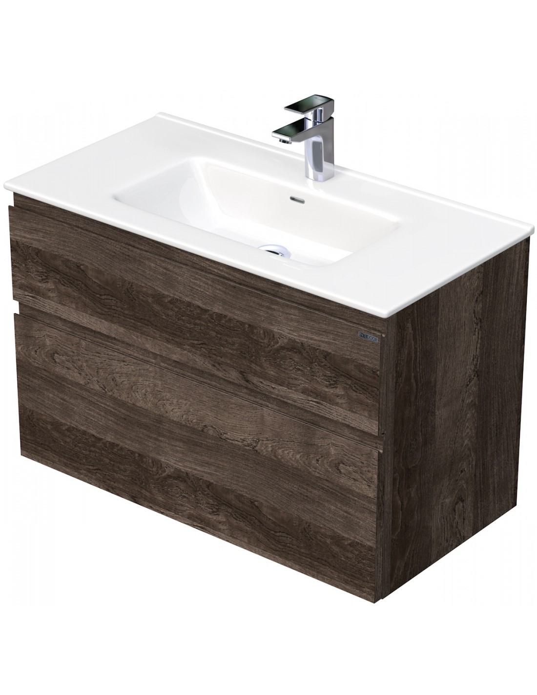 LETTY Komplet badmiljø med håndvask B91 cm Keramik og MDF - Mørk eg