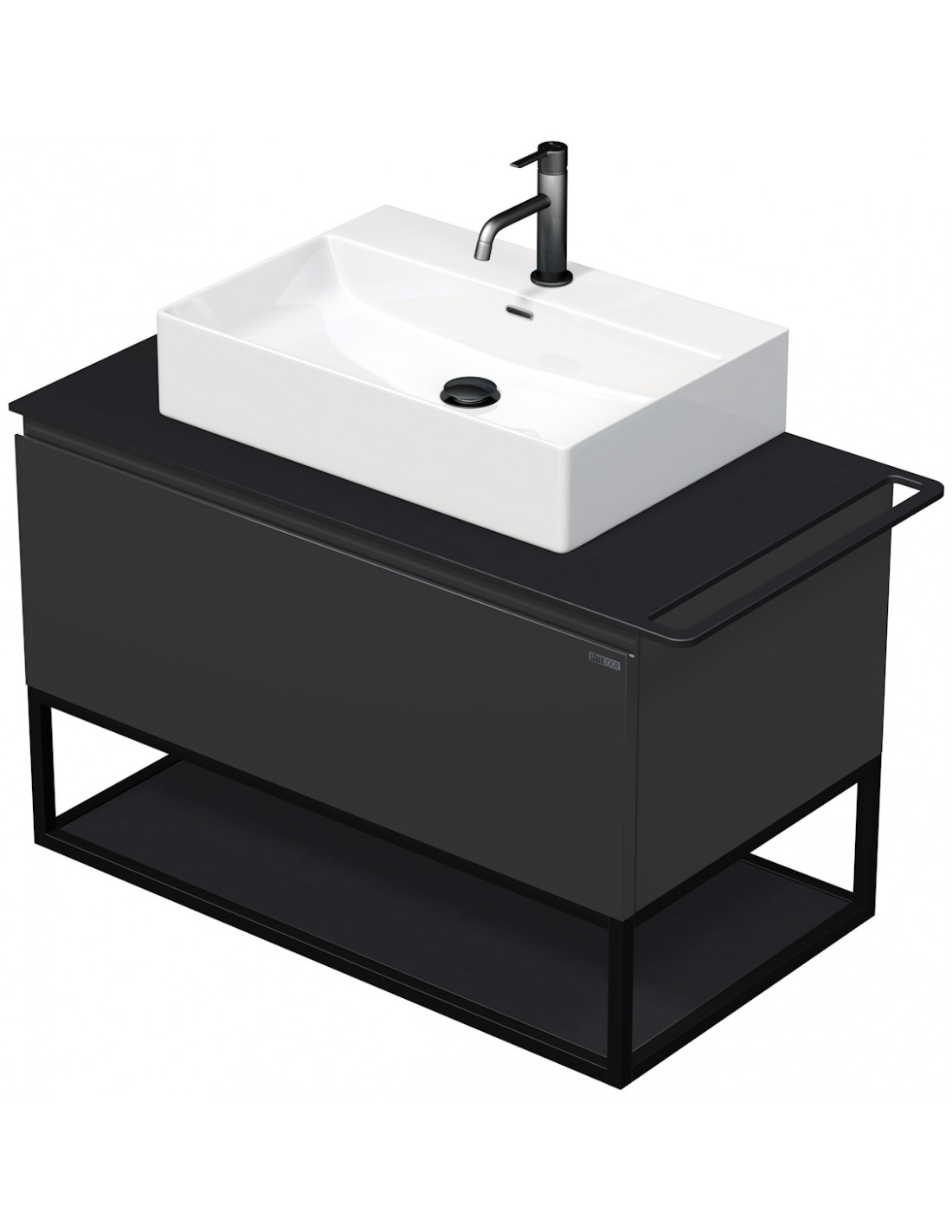 TARA Komplet badmiljø med 1 håndvask B98 cm Keramik, HPL og MDF - Sort/Antracit højglans