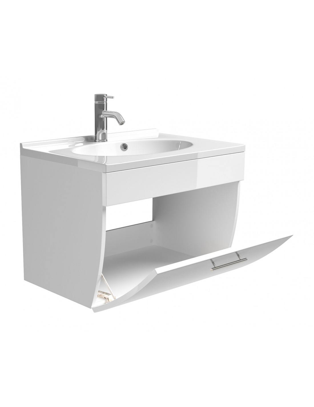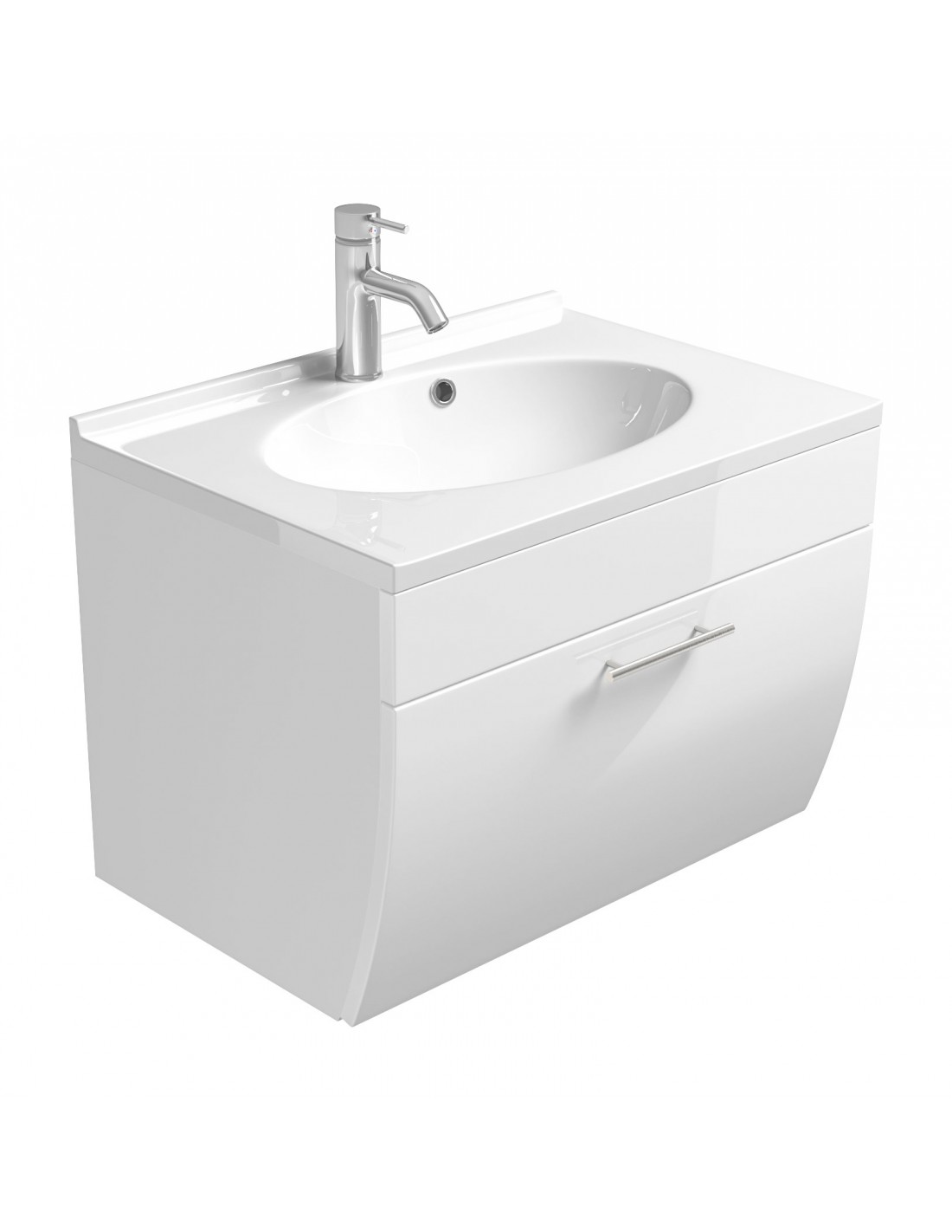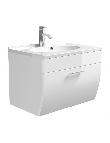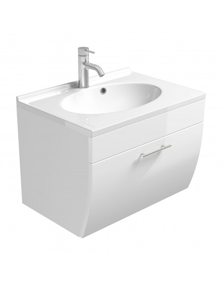 Komplet badmiljø i mdf og mineralsten H51 x B70 cm - Hvid højglans