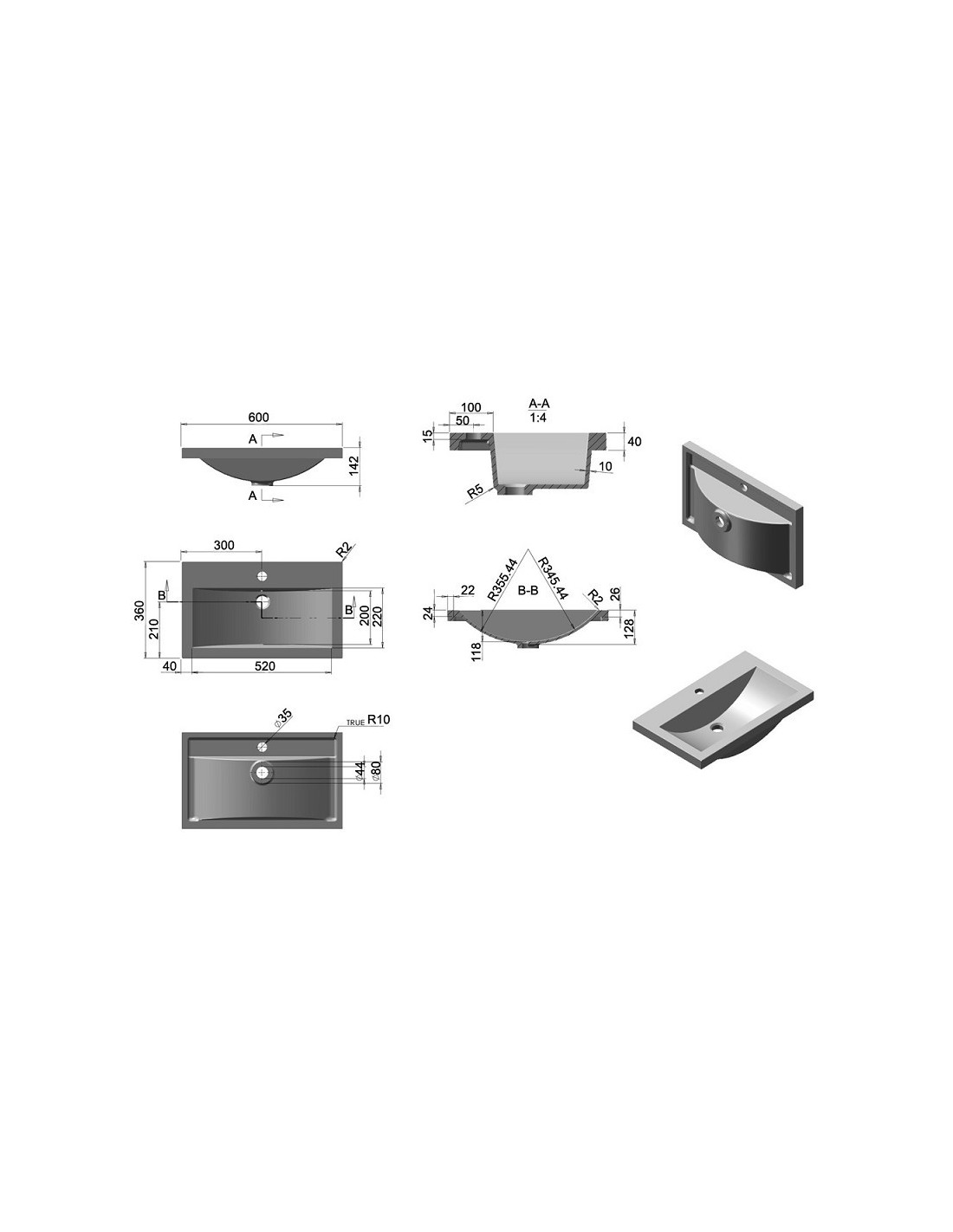 Komplet badmiljø med vask, udført i et design af mdf og keramik. Badmiljøet måler 52,5 cm i højden og 60,8 x 36,4 cm i bredde og dybde.