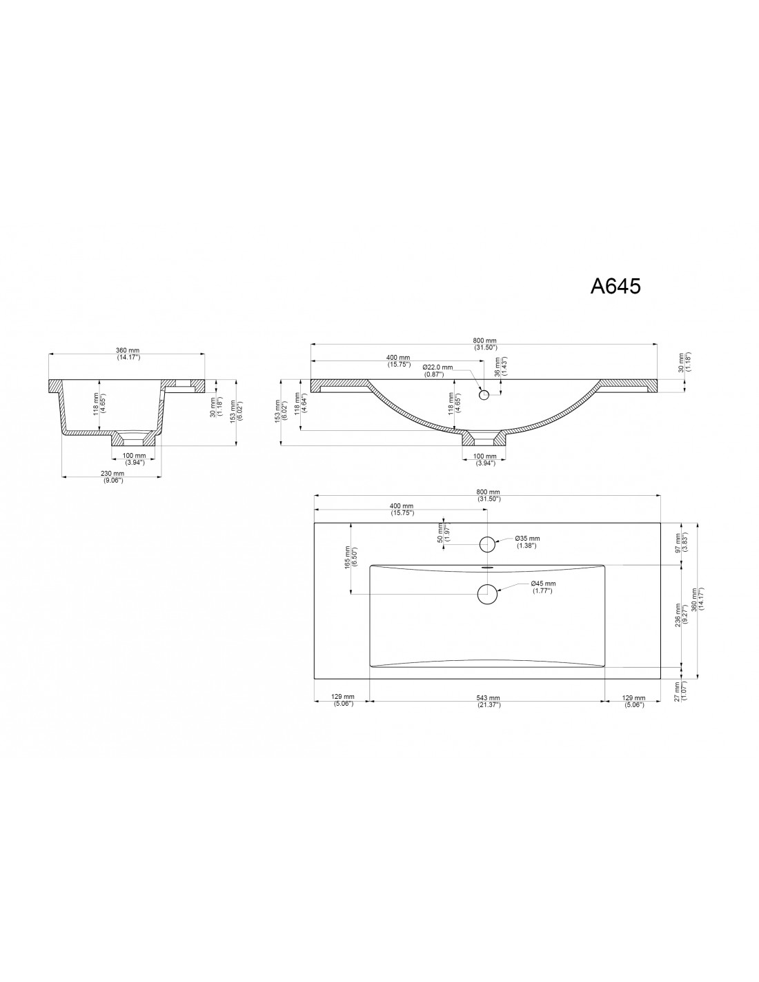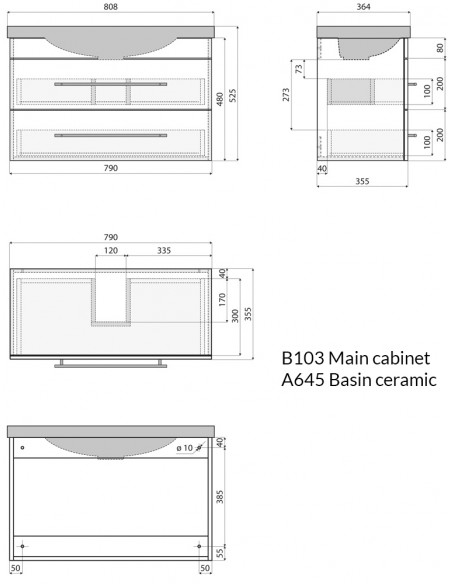 Komplet badmiljø med vask, udført i et design af mdf og keramik. Badmiljøet måler 52,5 cm i højden og 80,8 x 36,4 cm i bredde og dybde.