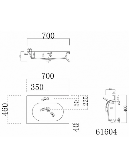 Komplet badmiljø med vask, udført i et design af mdf og mineralsten. Badmiljøet måler 55 cm i højden og 70 x 46,5 cm i bredde og dybde.