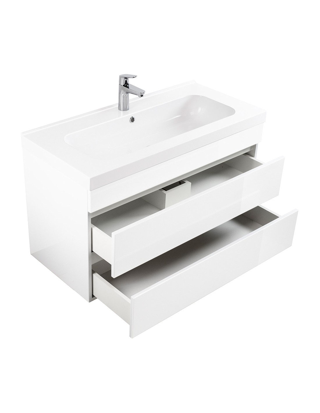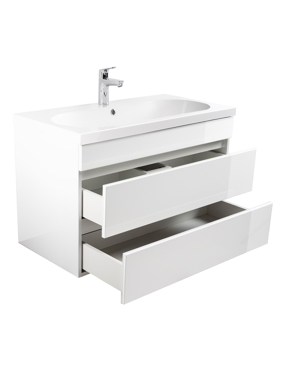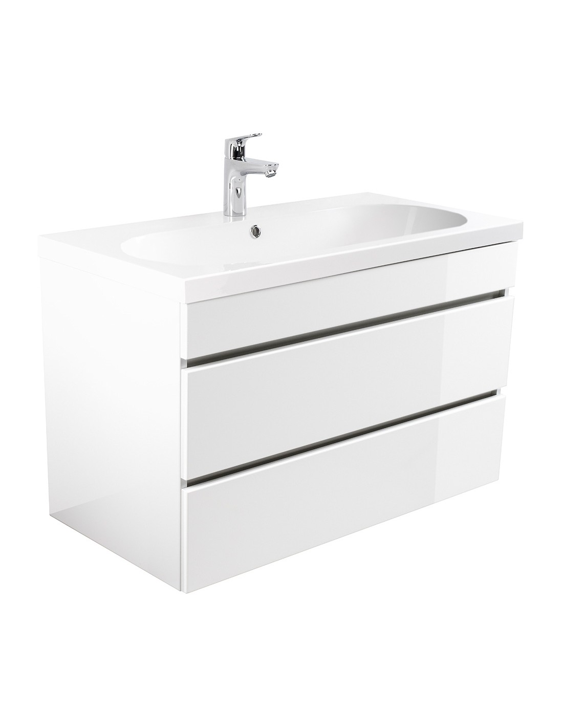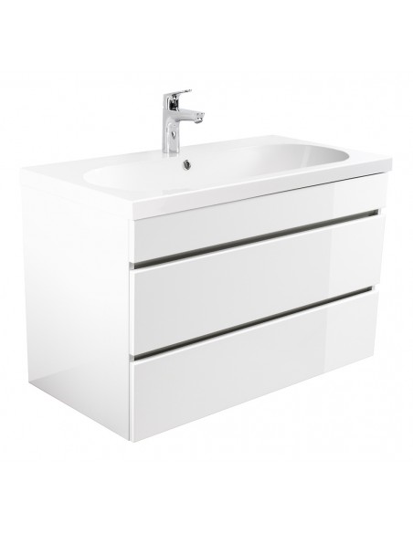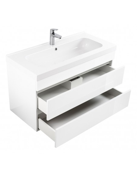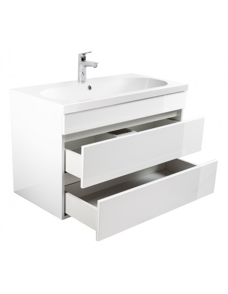 Kali komplet badmiljø i mdf og mineralsten H55 x B91 cm - Hvid højglans