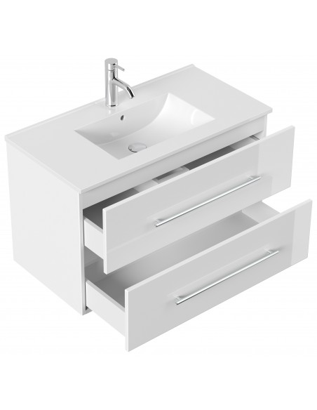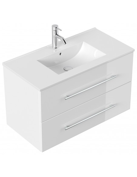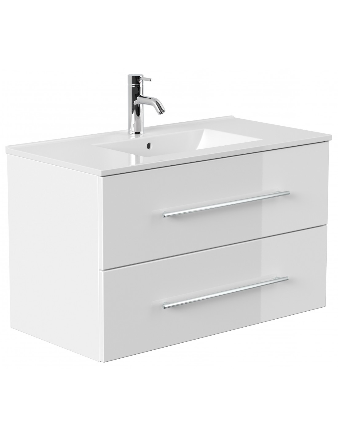 Homeline komplet badmiljø i mdf og mineralsten H54 x B90 cm - Hvid højglans