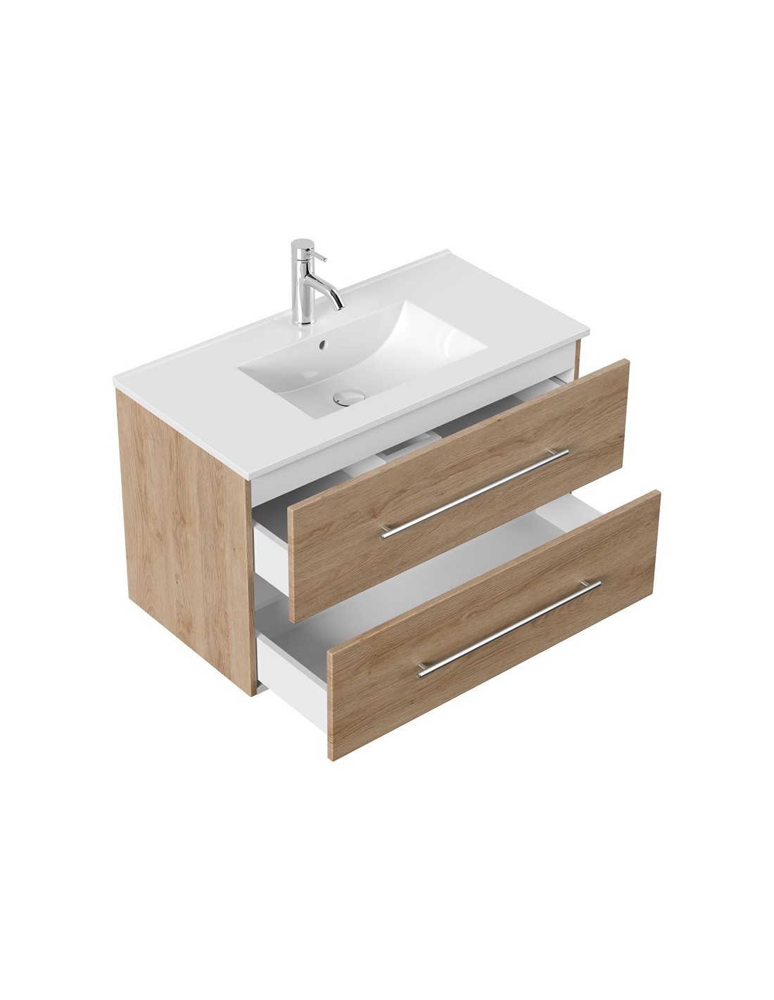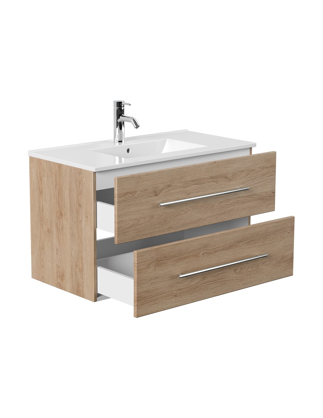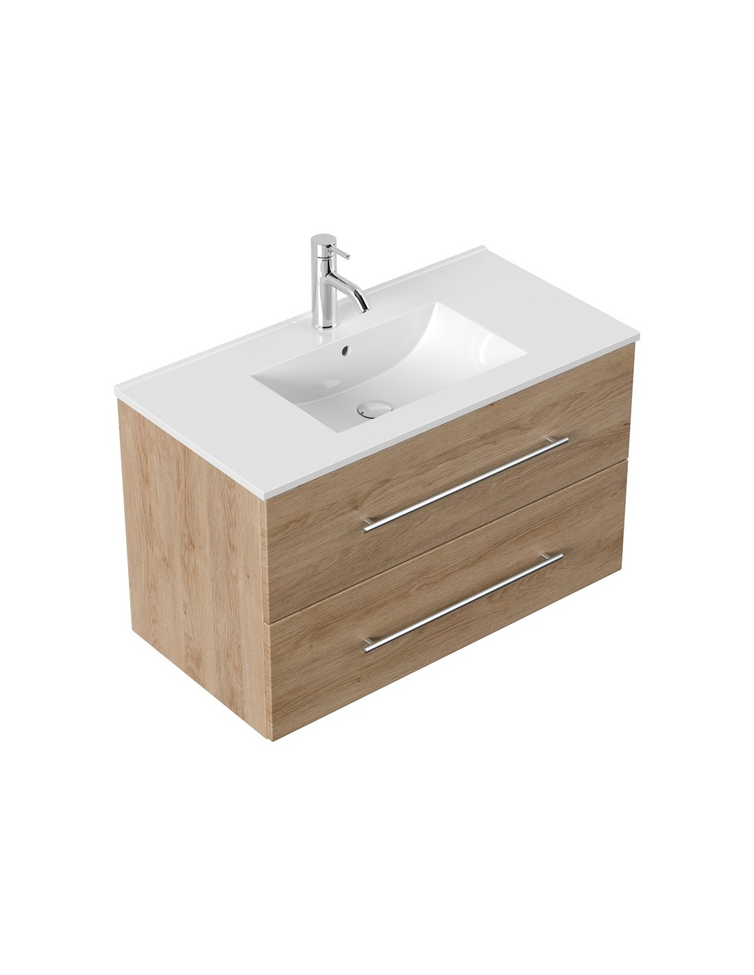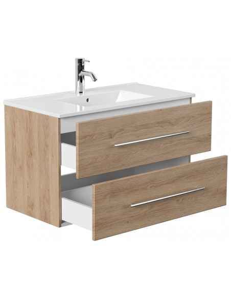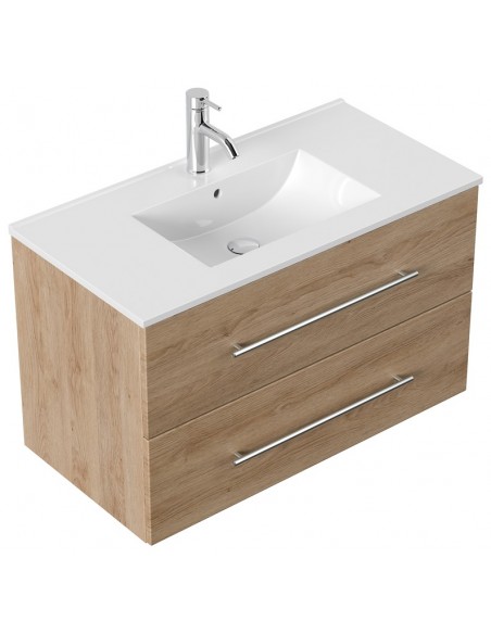 Homeline komplet badmiljø i mdf og mineralsten H54 x B90 cm - Sonoma eg