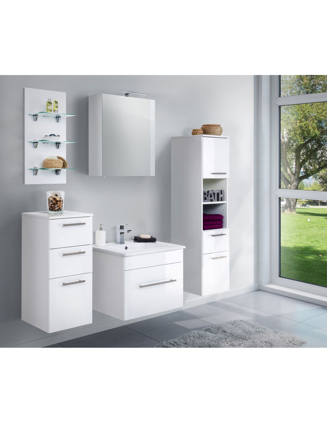 Viva komplet badmiljø i mdf og mineralsten H49,7 x B61,5 cm - Hvid højglans