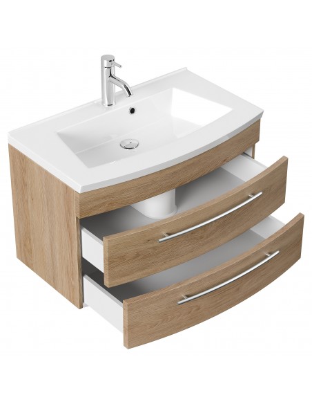Luna komplet badmiljø i mdf og mineralsten H53 x B82 cm - Sonoma eg