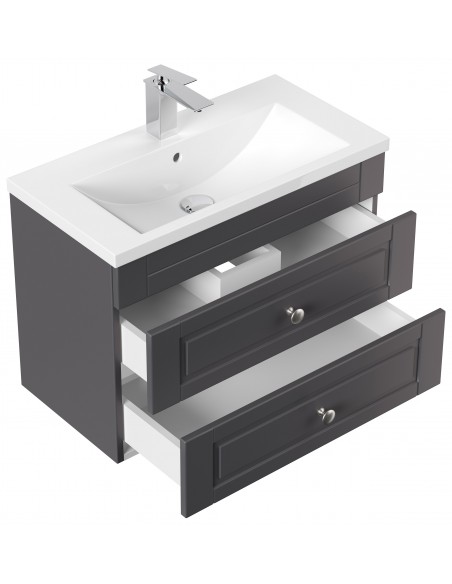 Portus Cottage komplet badmiljø i mdf og keramik H52,5 x B71 cm - Antracit højglans