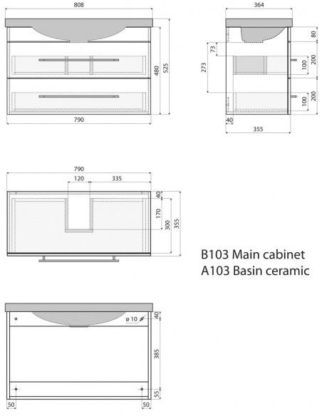 Komplet badmiljø med vask, udført i et design af mdf og keramik. Badmiljøet måler 52,5 cm i højden og 80,8 x 36,4 cm i bredde og dybde.