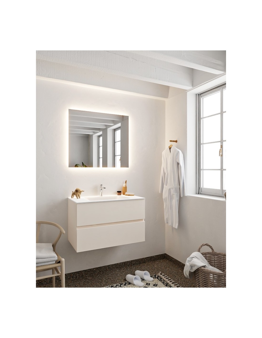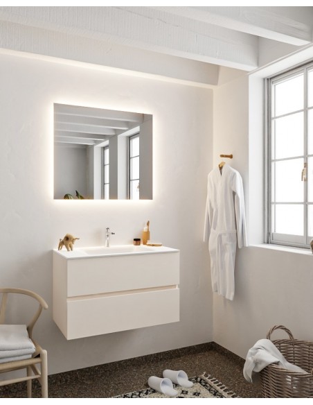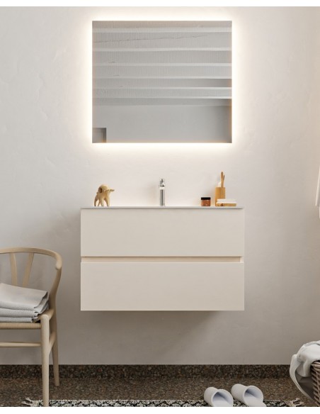 Vica Komplet badmiljø centreret håndvask B80 cm MDF - Linned/Talkum