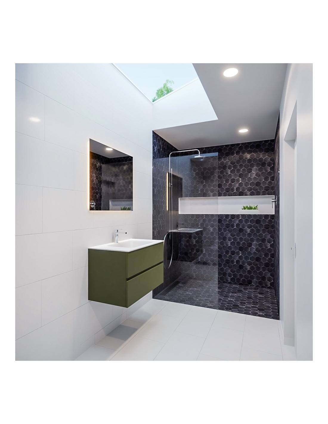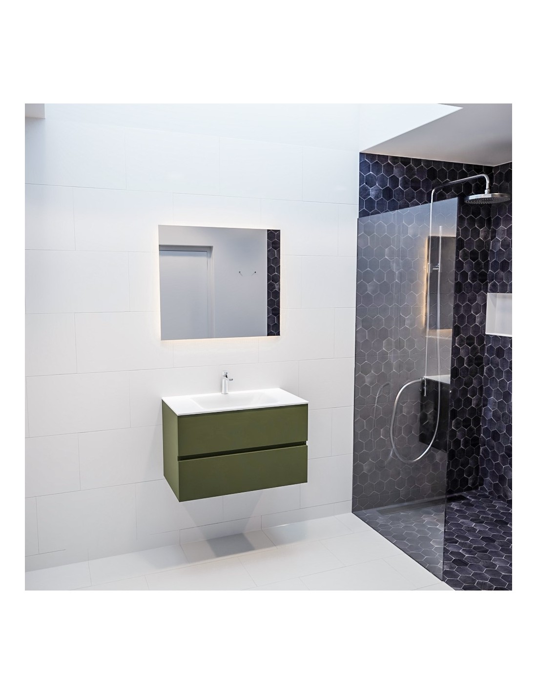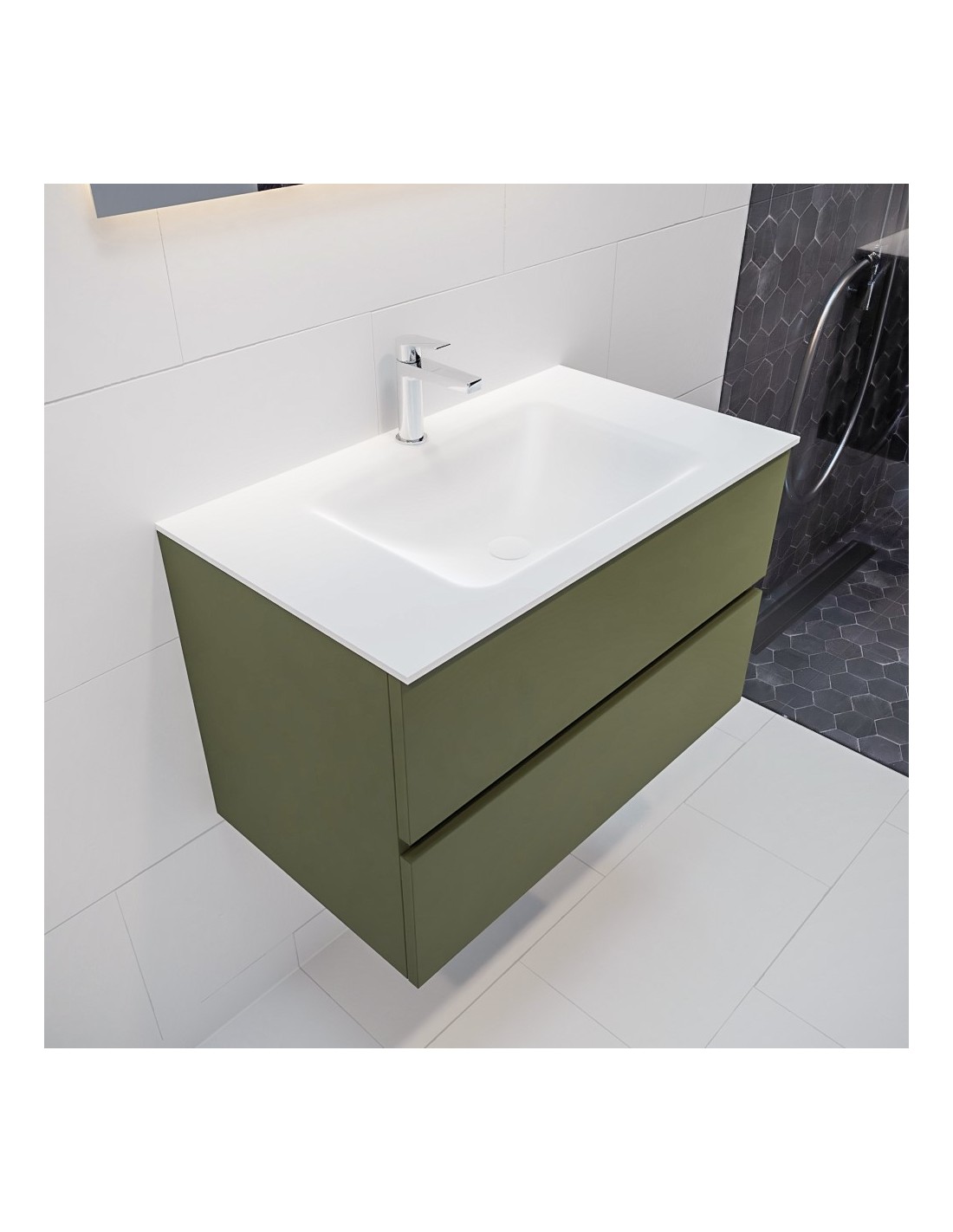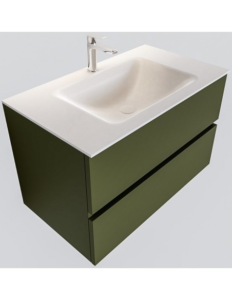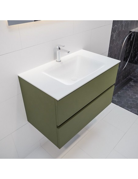 Vica Komplet badmiljø centreret håndvask B80 cm MDF - Armygrøn/Talkum