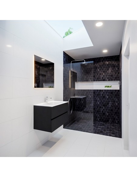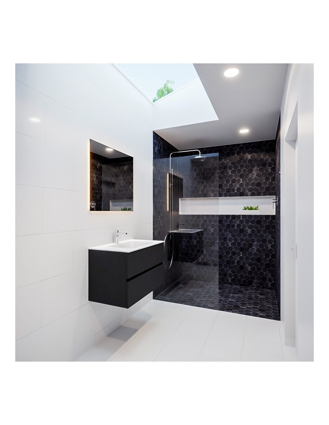 Vica Komplet badmiljø centreret håndvask B80 cm MDF - Sort/Talkum