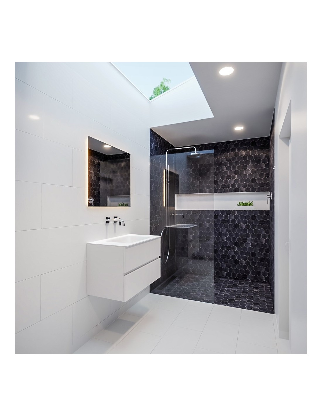 • Midt centreret håndvask (bredde 47 cm)