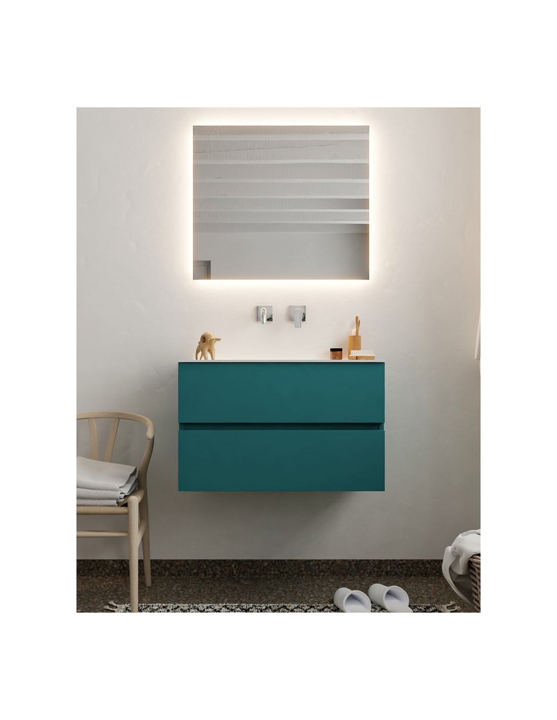 Vica Komplet badmiljø centreret håndvask B80 cm MDF - Petrolium/Talkum
