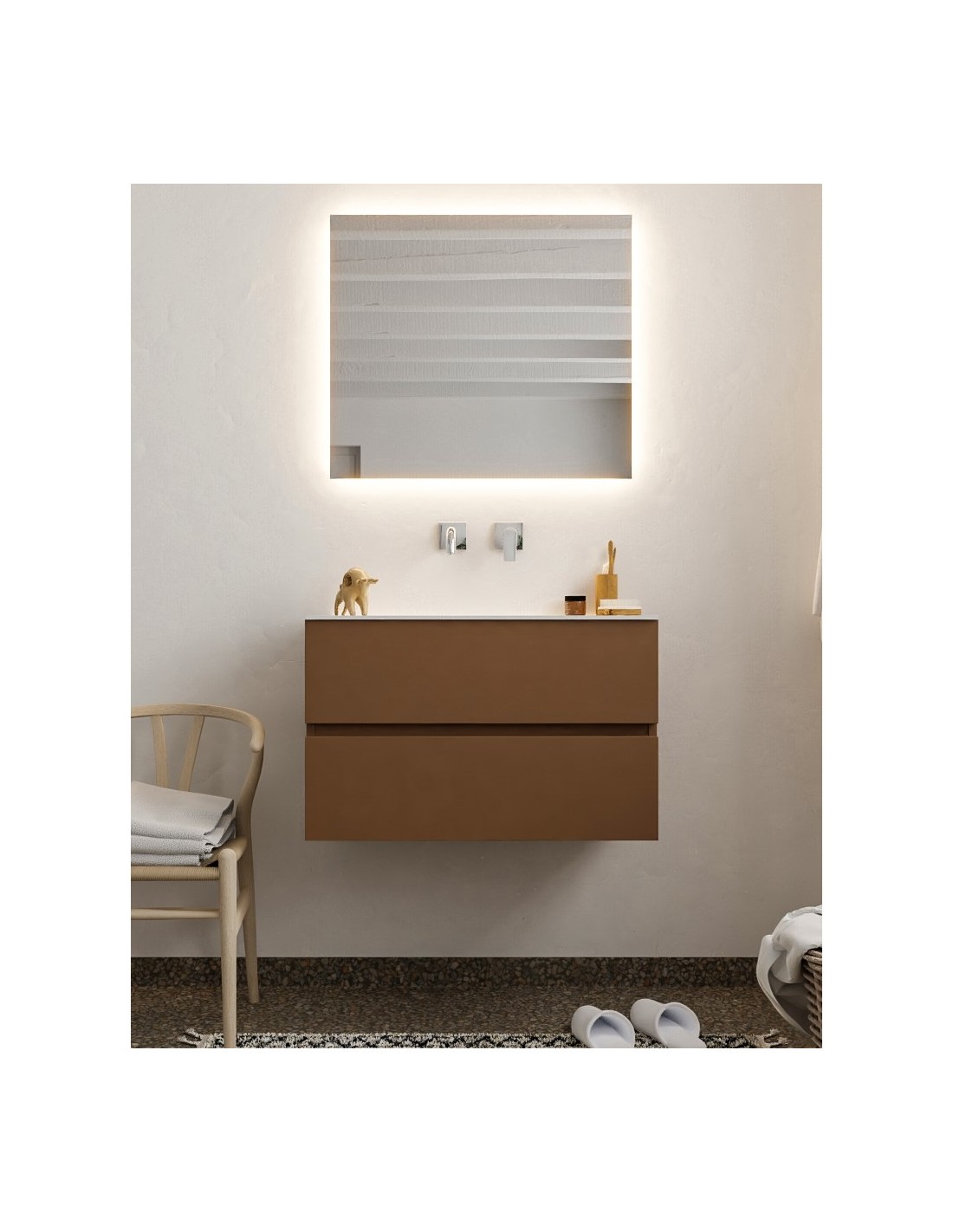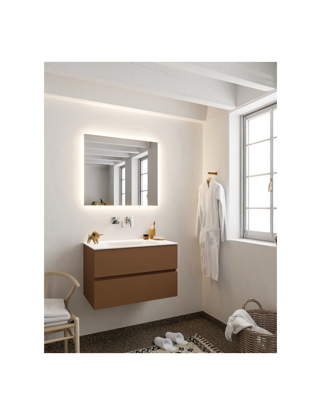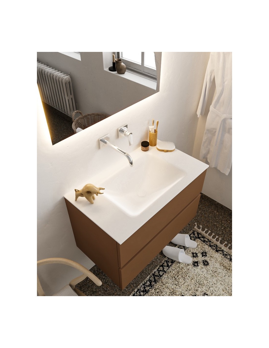 Vica Komplet badmiljø centreret håndvask B80 cm MDF - Rust/Talkum