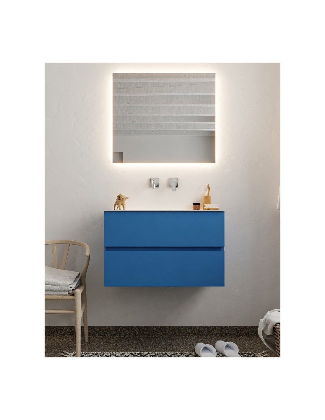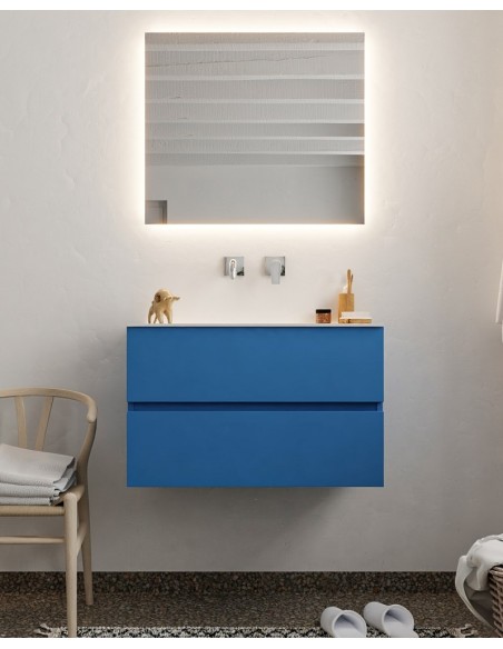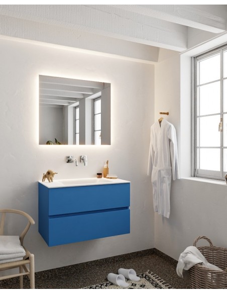 Vica Komplet badmiljø centreret håndvask B80 cm MDF - Jeansblå/Talkum