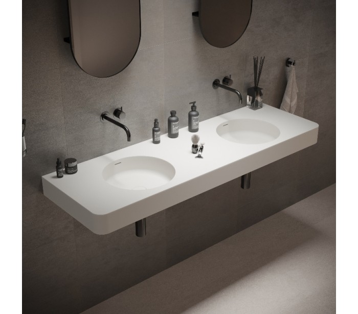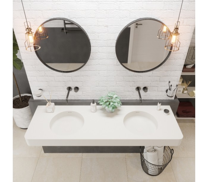 Håndvask i et design fra Hollandske Ideavit. Håndvasken er fremstillet i materialet "Solid Surface", der ikke alene giver badeværelset et stilrent design, men samtidig er lækkert at røre ved. Håndvasken måler 150 x 48 cm i diameter og 14 cm i højden (ydermål). Leveres uden pop-up bundventil med cover (reference 284709).