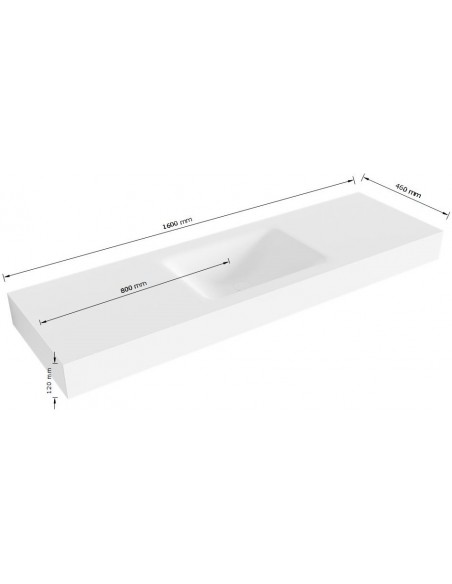CLOUD håndvask udført i et moderne og stilrent design i det solide materiale "Solid Surface", der ikke alene giver badeværelset et stilrent design, men samtidig er lækkert at røre ved. Håndvasken måler 12 cm i højden og 160 x 46 cm i bredde og dybde (ydermål). Håndvasken leveres med pop-up bundventil (andre standard bundventiler kan selvfølgelig også anvendes).
