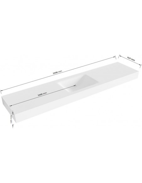 CLOUD håndvask udført i et moderne og stilrent design i det solide materiale "Solid Surface", der ikke alene giver badeværelset et stilrent design, men samtidig er lækkert at røre ved. Håndvasken måler 12 cm i højden og 200 x 46 cm i bredde og dybde (ydermål). Håndvasken leveres med pop-up bundventil (andre standard bundventiler kan selvfølgelig også anvendes).