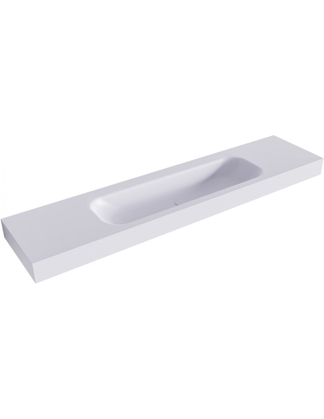 BIG LARGE håndvask udført i et moderne og stilrent design i det solide materiale "Solid Surface", der ikke alene giver badeværelset et stilrent design, men samtidig er lækkert at røre ved. Håndvasken måler 12 cm i højden og 200 x 46 cm i bredde og dybde (ydermål). Håndvasken leveres med pop-up bundventil (andre standard bundventiler kan selvfølgelig også anvendes).