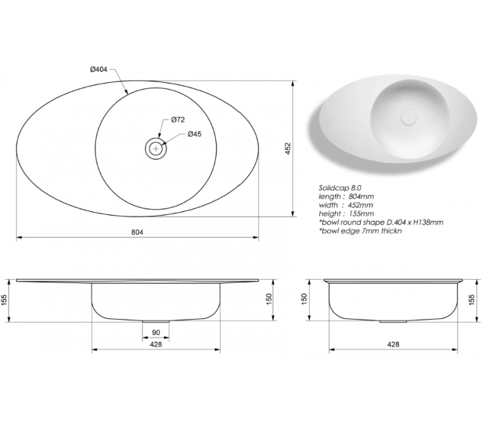 • Materiale: Solid Surface
