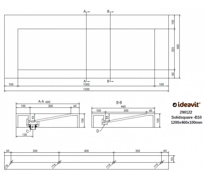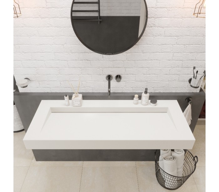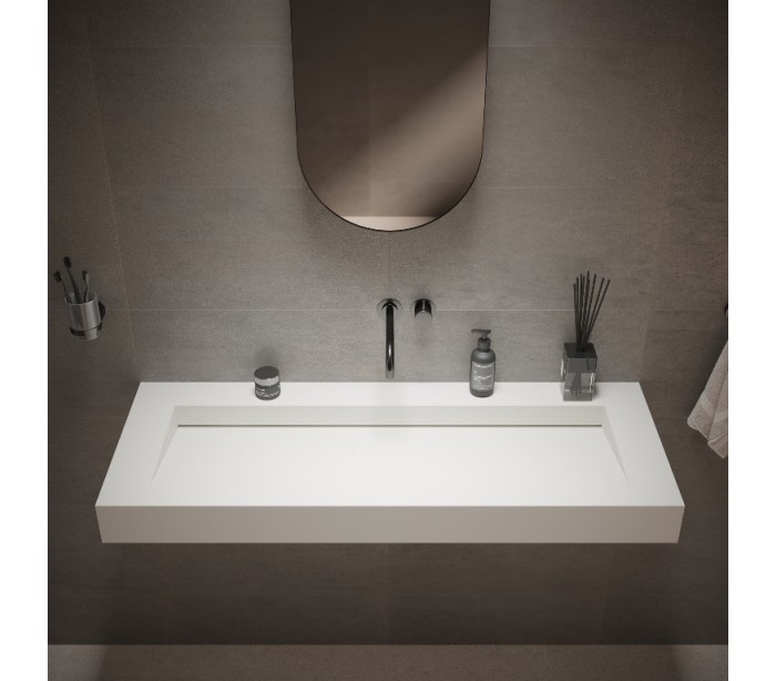 Håndvask i et design fra Hollandske Ideavit. Håndvasken er fremstillet i materialet "Solid Surface", der ikke alene giver badeværelset et stilrent design, men samtidig er lækkert at røre ved. Håndvasken måler 120 x 46 cm i diameter og 10 cm i højden (ydermål). Leveres med indbygget afløbsventil/bundventil.