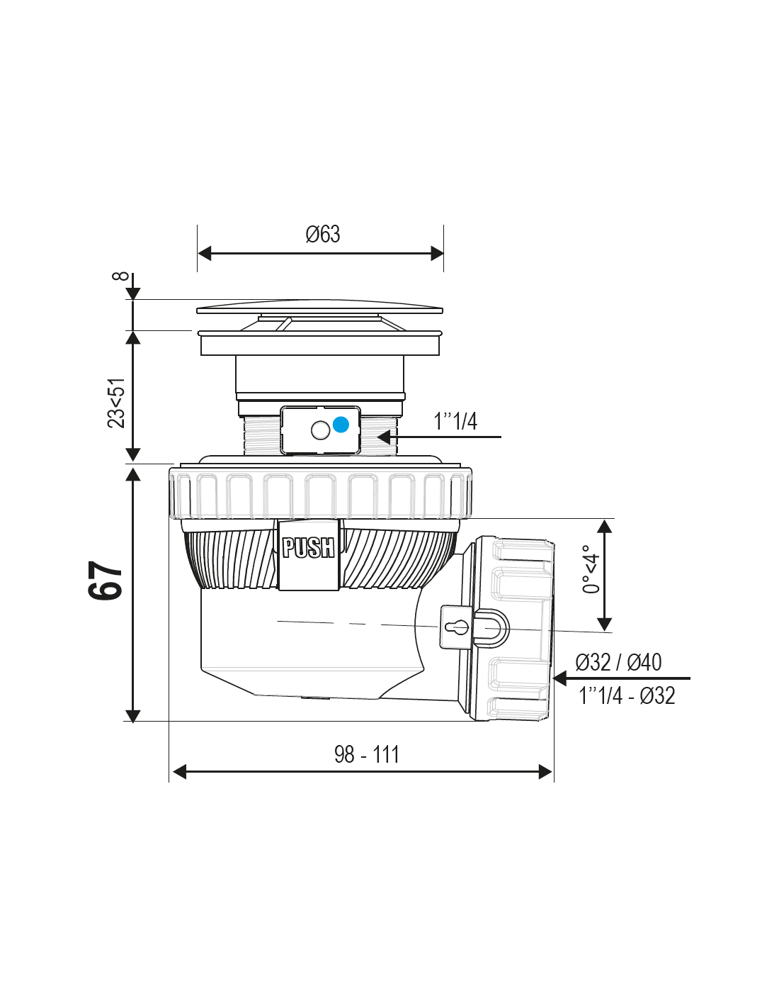 • Bundventil med pop-up funktion medfølger 1 1/4" samt pladsbesparende sifon/vandlås med kliksystem til afløb (andre standard bundventiler kan selvfølgelig også anvendes)