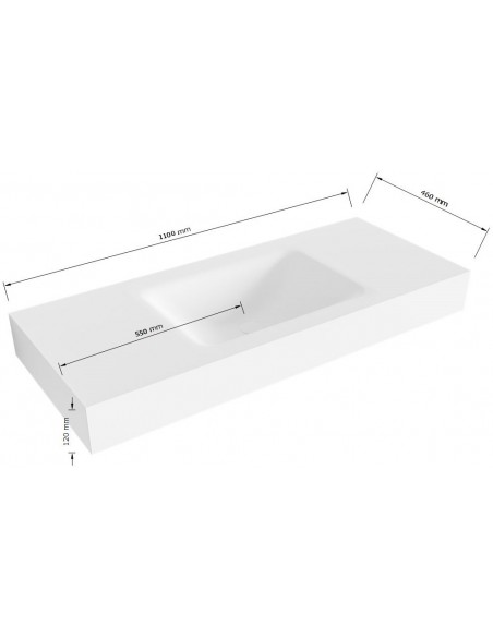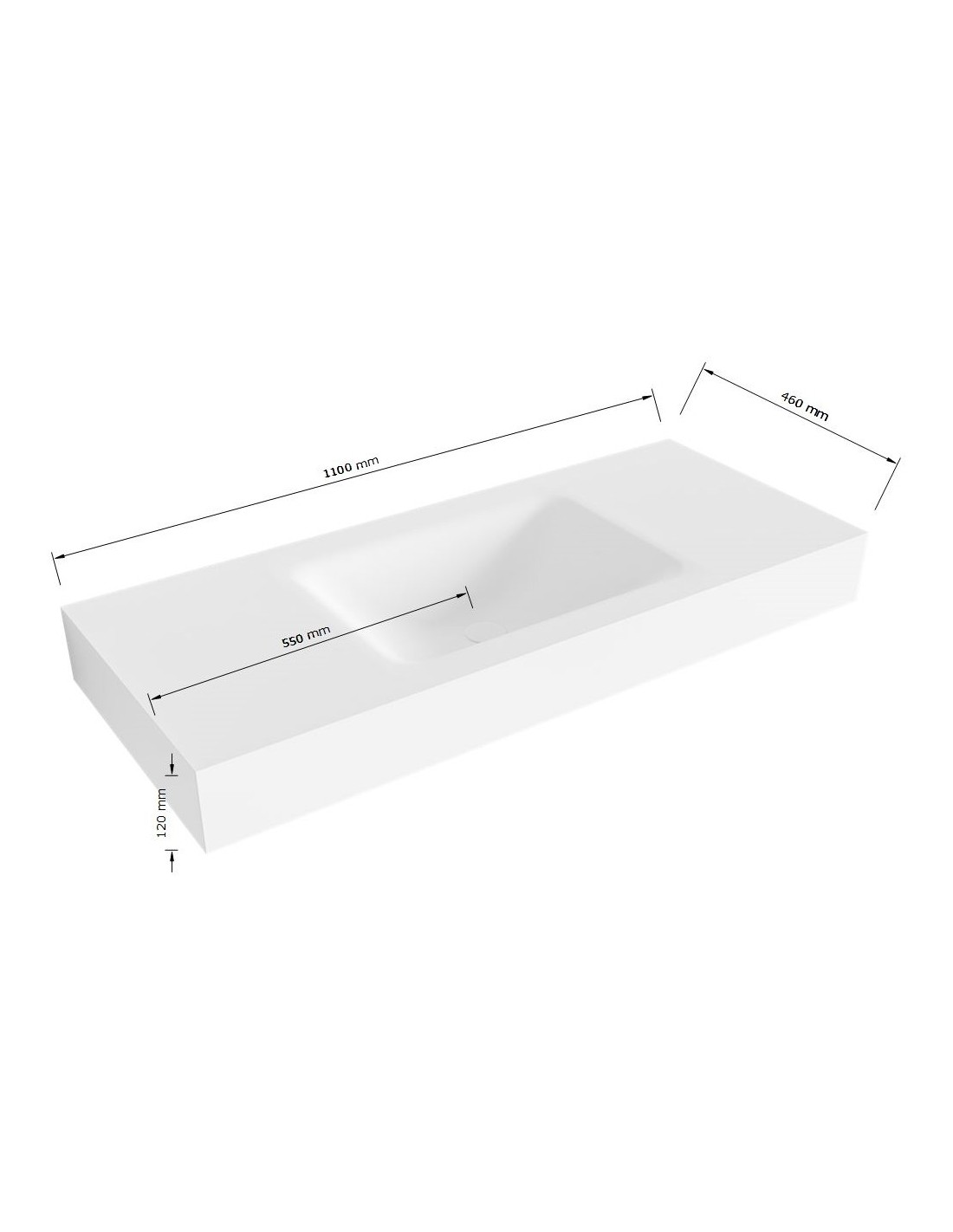 CLOUD håndvask udført i et moderne og stilrent design i det solide materiale "Solid Surface", der ikke alene giver badeværelset et stilrent design, men samtidig er lækkert at røre ved. Håndvasken måler 12 cm i højden og 110 x 46 cm i bredde og dybde (ydermål). Håndvasken leveres med pop-up bundventil (andre standard bundventiler kan selvfølgelig også anvendes).