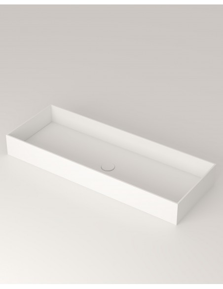 Bordmonteret håndvask fra Spanske ICÓNICO, udført i et design fremstillet i det solide materiale "Solid Surface", der ikke alene giver badeværelset et stilrent design, men samtidig er lækkert at røre ved. Håndvasken måler 12 cm i højden og 100 x 37 cm i bredde og dybde (ydermål). Leveres med bundventil.