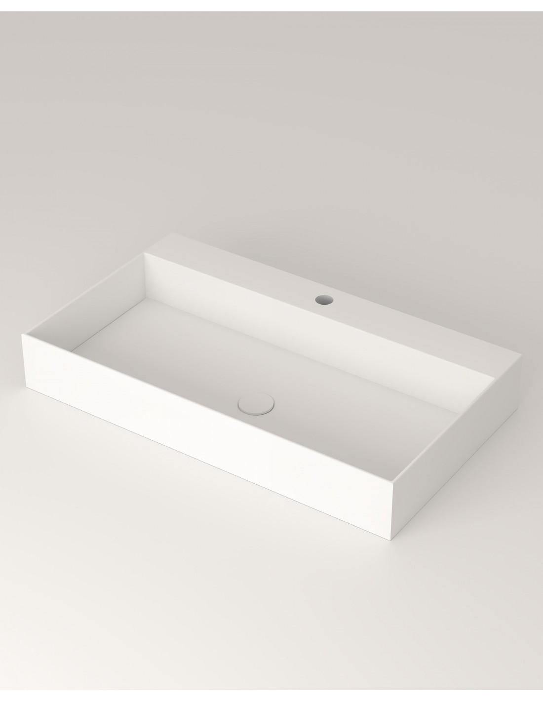 Bordmonteret håndvask fra Spanske ICÓNICO, udført i et design fremstillet i det solide materiale "Solid Surface", der ikke alene giver badeværelset et stilrent design, men samtidig er lækkert at røre ved. Håndvasken måler 12 cm i højden og 80 x 46 cm i bredde og dybde (ydermål). Leveres med bundventil.