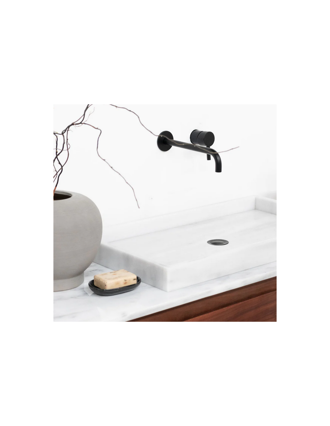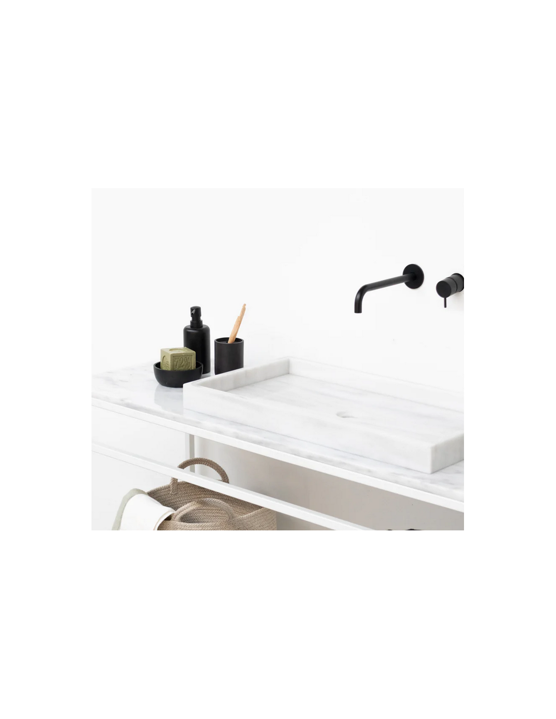 Bordmonteret håndvask udført i et design af hvid marmor. Håndvasken måler 8 cm i højden og 70 x 38 cm i bredde og dybde (ydermål). Vasken leveres uden bundventil (standard mål). Bemærk venligst, at da der er tale om et naturmateriale, så vil 2 håndvaske ikke være helt ens i strukturen. Hertil kán der være en mindre variation i nuancen i forhold til de viste produktbilleder.