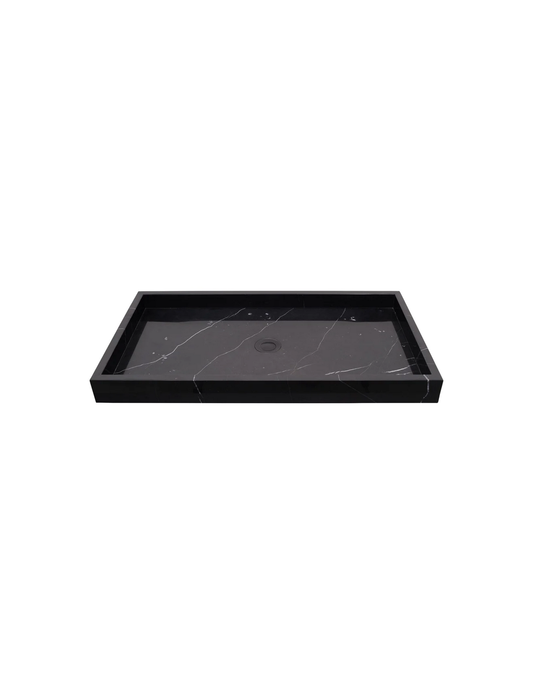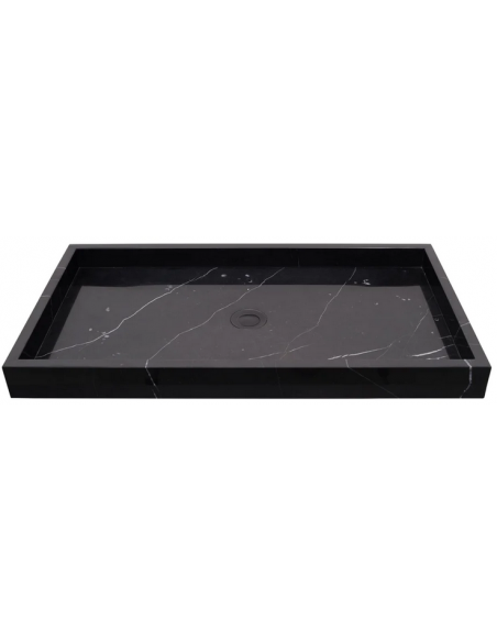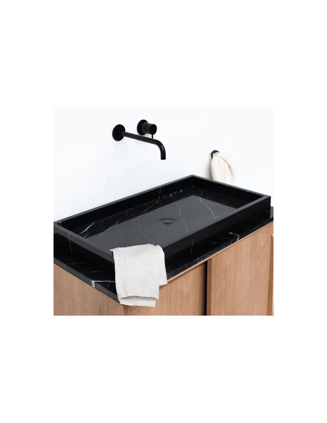 Bordmonteret håndvask udført i et design af sort marmor. Håndvasken måler 8 cm i højden og 70 x 38 cm i bredde og dybde (ydermål). Vasken leveres uden bundventil (standard mål). Bemærk venligst, at da der er tale om et naturmateriale, så vil 2 håndvaske ikke være helt ens i strukturen. Hertil kán der være en mindre variation i nuancen i forhold til de viste produktbilleder.