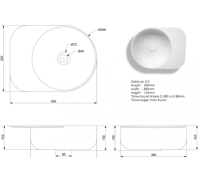 Ideavit Solidcap 6.0 bordmonteret håndvask 50 x 38 cm Solid surface - Mat hvid