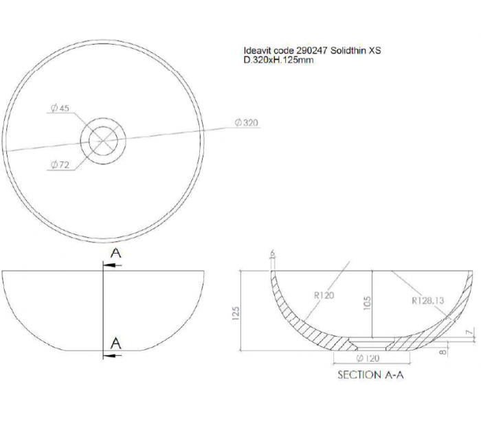 Håndvask i et design fra Hollandske Ideavit. Håndvasken er fremstillet i materialet "Solid Surface", der ikke alene giver badeværelset et stilrent design, men samtidig er lækkert at røre ved. Håndvasken måler 32 cm i diameter og 12,5 cm i højden (ydermål). Leveres uden pop-up bundventil med cover (reference 281148).