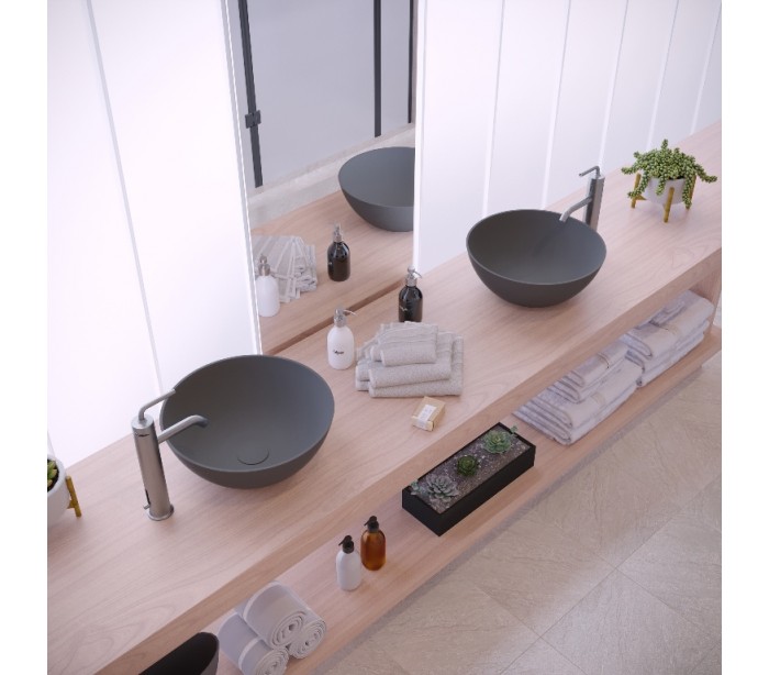 Ideavit Solidthin bordmonteret håndvask Ø39 cm Solid surface - Mat mørkegrå