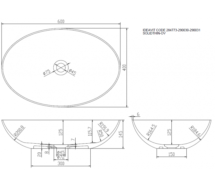 Håndvask i et design fra Hollandske Ideavit. Håndvasken er fremstillet i materialet "Solid Surface", der ikke alene giver badeværelset et stilrent design, men samtidig er lækkert at røre ved. Håndvasken måler 60 x 40 cm i diameter og 14,5 cm i højden (ydermål). Leveres uden pop-up bundventil med cover (reference 281148).