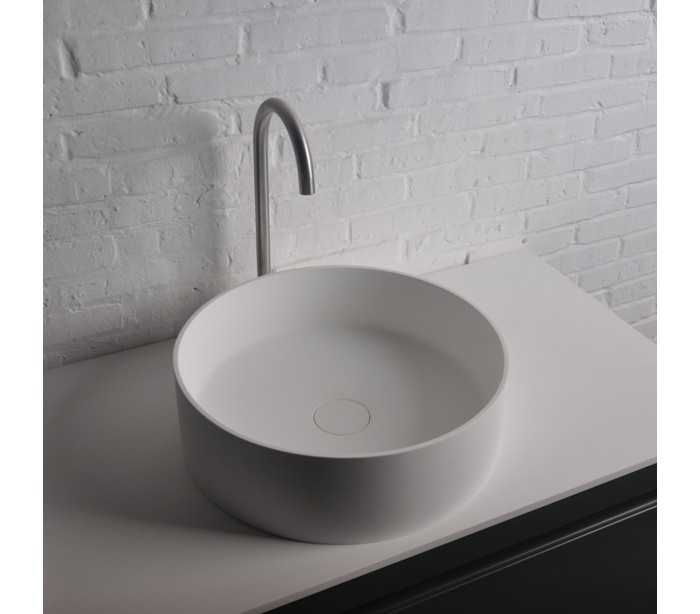Håndvask i et design fra Hollandske Ideavit. Håndvasken er fremstillet i materialet "Solid Surface", der ikke alene giver badeværelset et stilrent design, men samtidig er lækkert at røre ved. Håndvasken måler 40 cm i diameter og 12,5 cm i højden (ydermål). Leveres uden pop-up bundventil med cover (reference 281148).