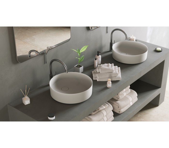 Ideavit Solidthin bordmonteret håndvask Ø40 cm Solid surface - Mat hvid
