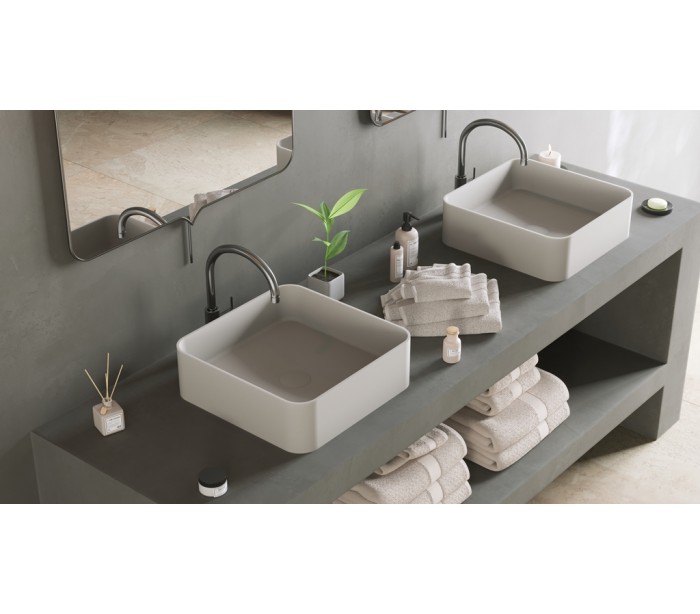 Ideavit Solidthin bordmonteret håndvask 40 x 40 cm Solid surface - Mat hvid
