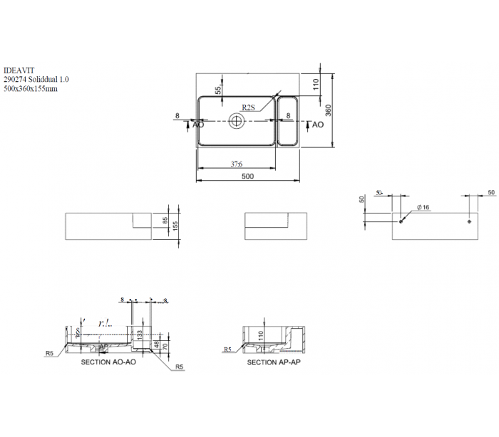 Håndvask i et design fra Hollandske Ideavit. Håndvasken er fremstillet i materialet "Solid Surface", der ikke alene giver badeværelset et stilrent design, men samtidig er lækkert at røre ved. Håndvasken måler 50 x 36 cm i diameter og 15,5 cm i højden (ydermål). Leveres uden pop-up bundventil med cover (reference 281148).