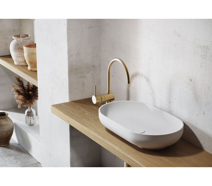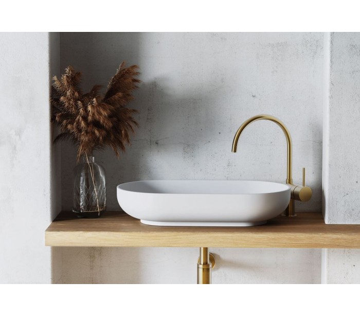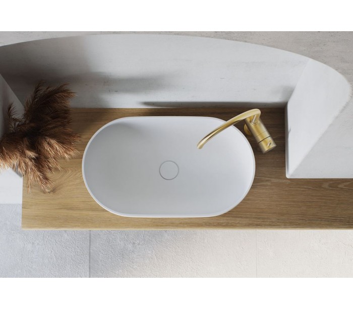 Gaia bordmonteret håndvask 58 x 34 cm i senstone - Mat hvid